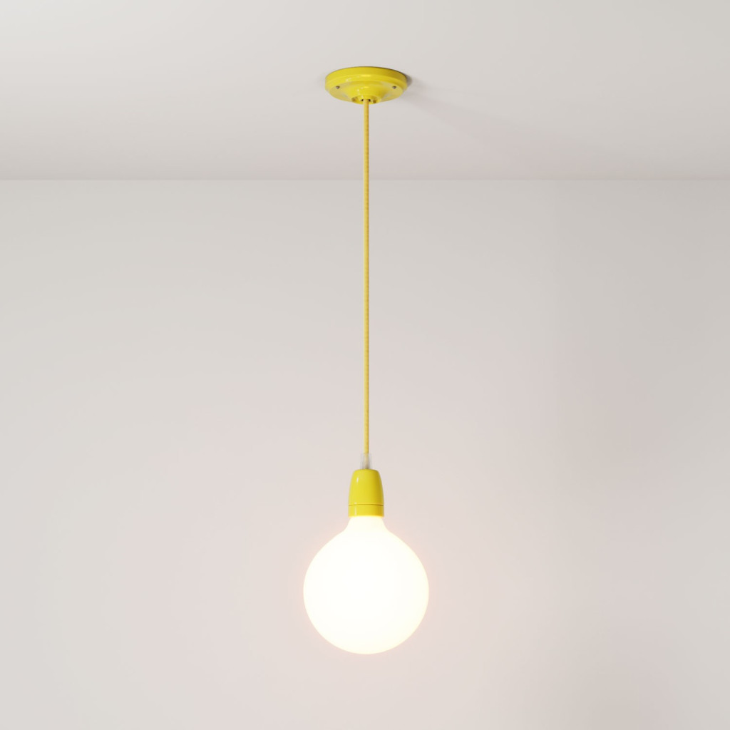 Suspended lamp with textile cable and colored porcelain details - Made in Italy - Bulb included