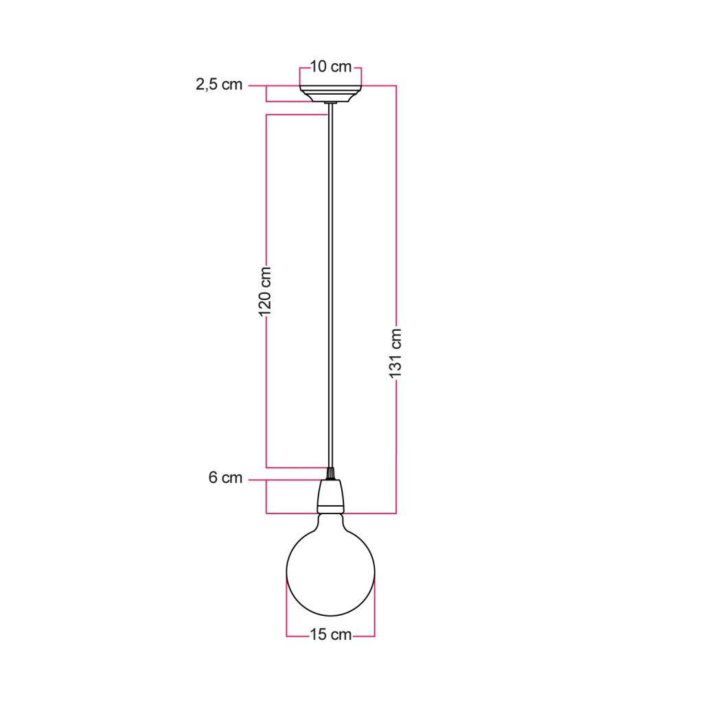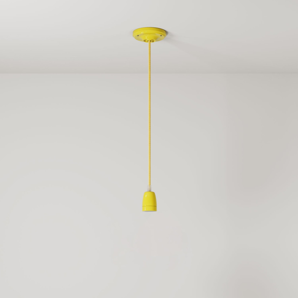 Suspended lamp with textile cable and colored porcelain details - Made in Italy - Bulb included