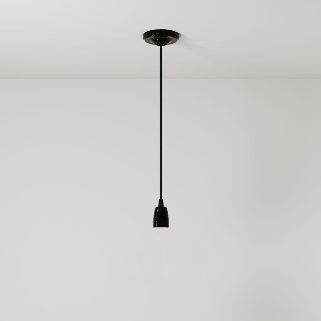 Suspended lamp with textile cable and colored porcelain details - Made in Italy - Bulb included