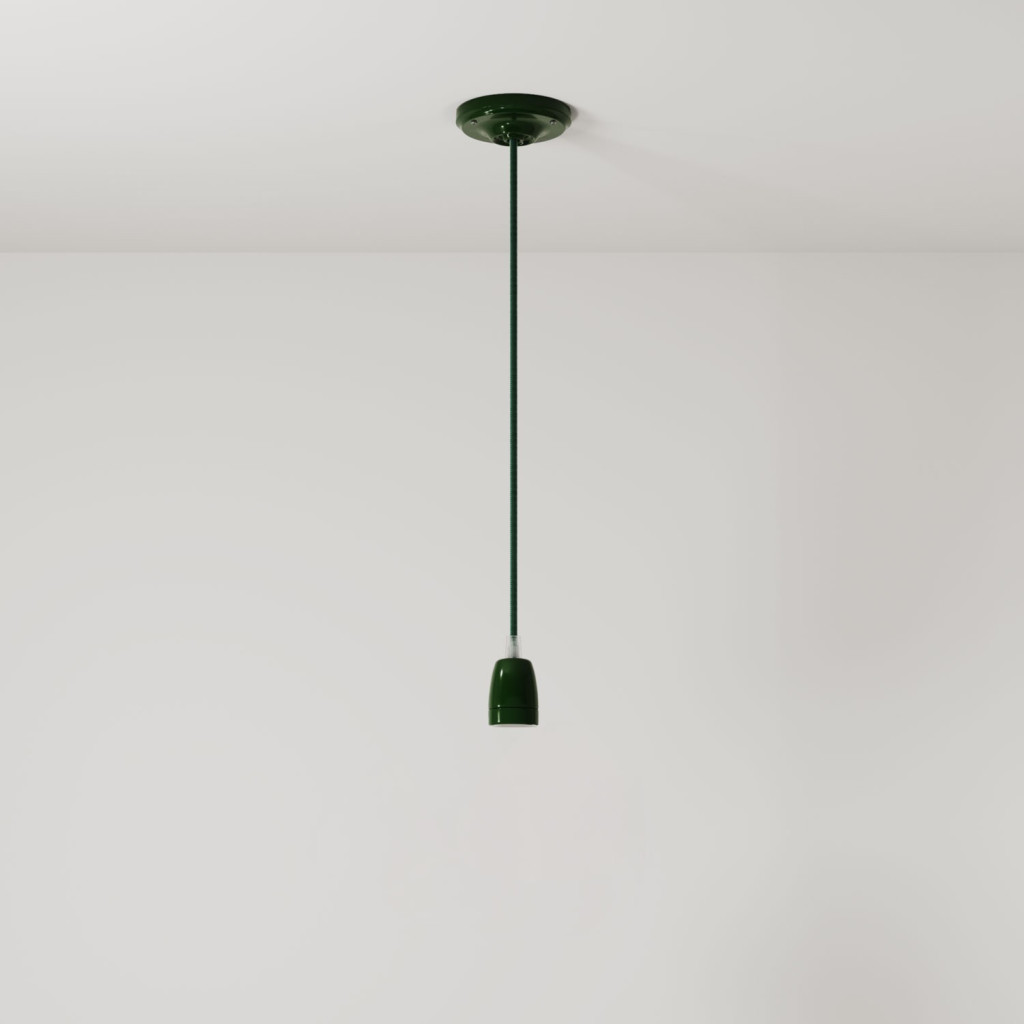 Suspended lamp with textile cable and colored porcelain details - Made in Italy - Bulb included