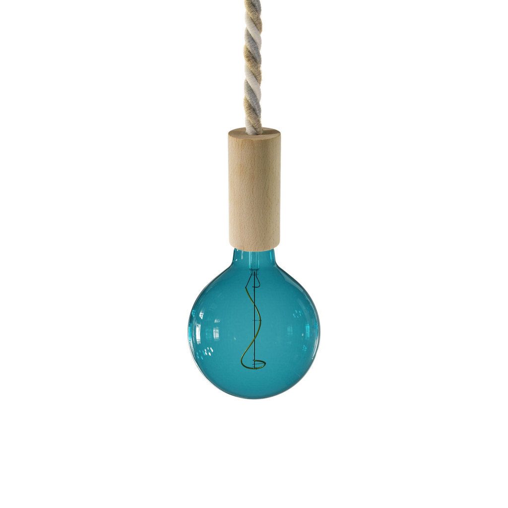 Suspended lamp XL with marine rope and wooden details - Made in Italy - Bulb included