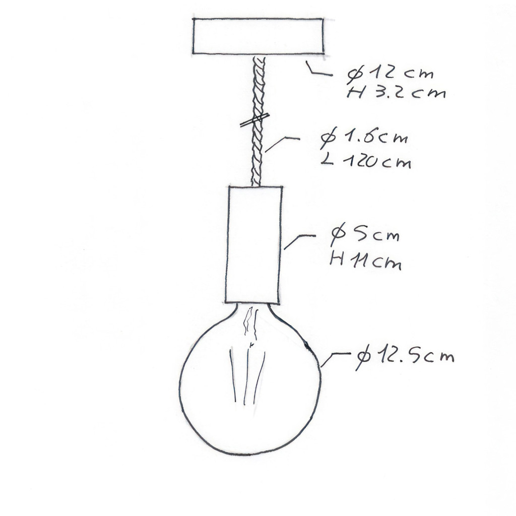 Suspended lamp XL with 16 mm marine cord, painted wood details - Made in Italy - Bulb included