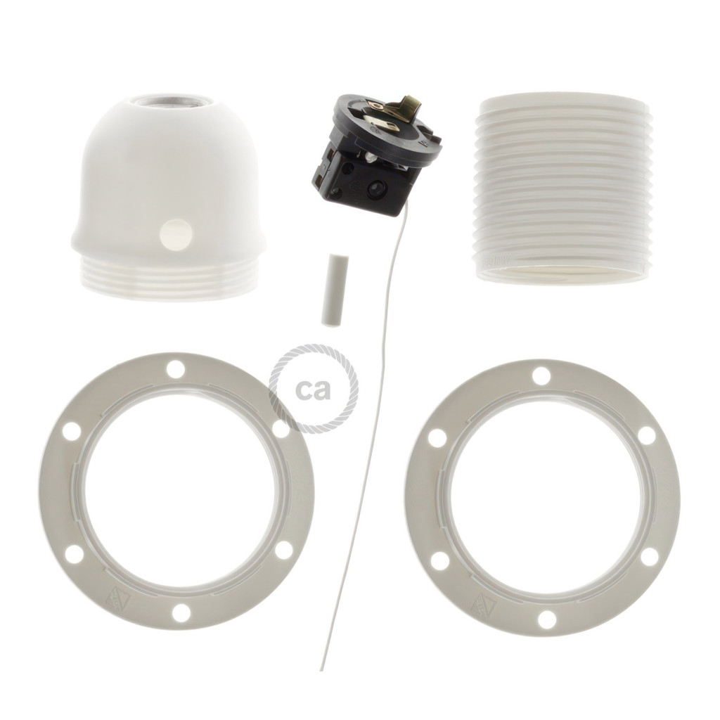 Double sleeve, thermoplastic E27 lamp holder set for lampshades, with pull switch