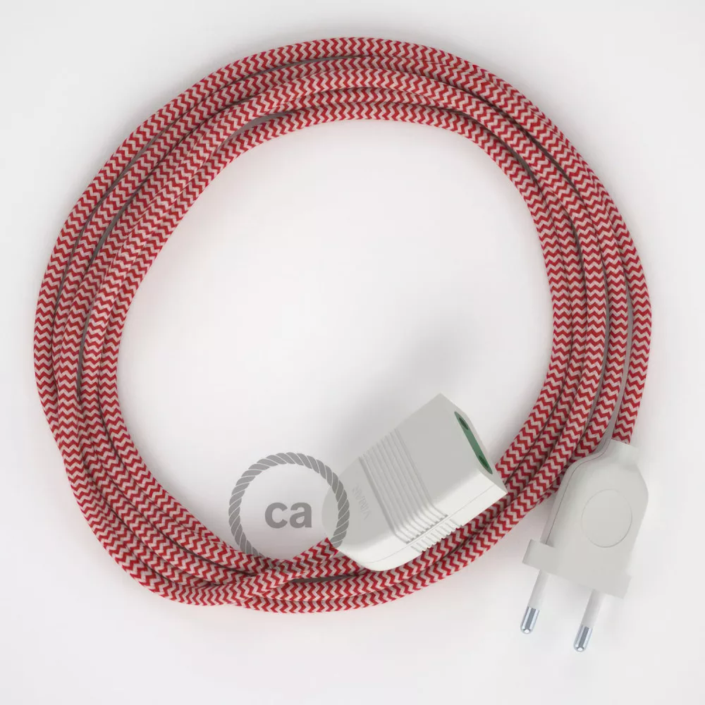 Red zigzag rayon fabric RZ09 2P 10A Extension cable Made in Italy