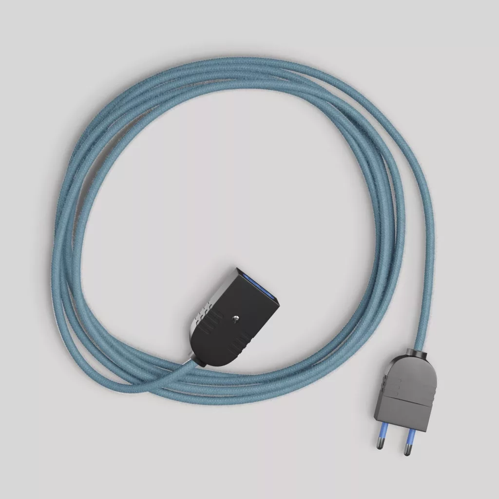 Electrical extension cable, ocean blue cotton cable 2P 10A, made in Italy