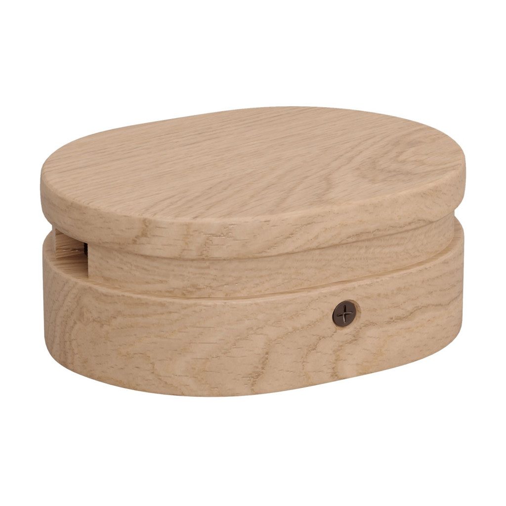 Oval wooden cover with 2 side openings for the string light cable and the Filé system. Made in Italy
