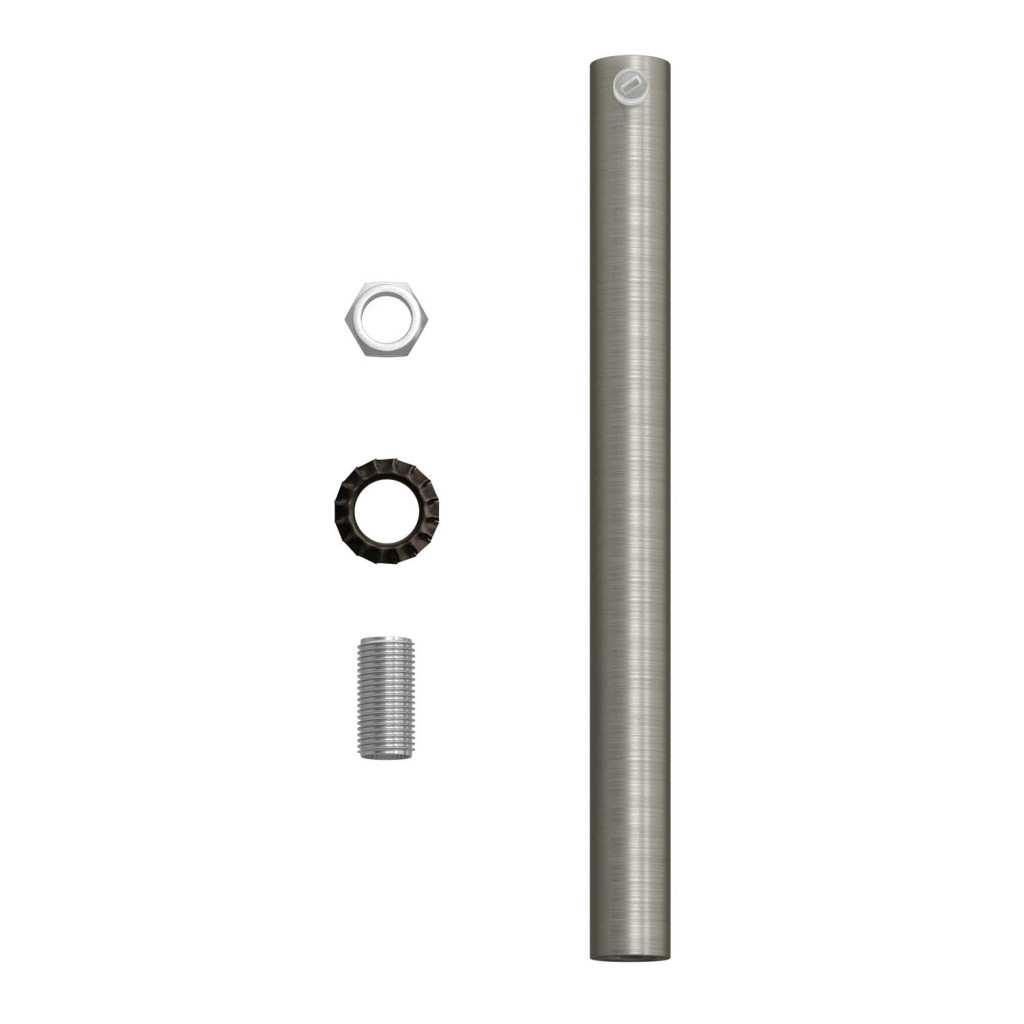 Cylindrical metal cable clamp, length 15 cm, with rod, nut and washer