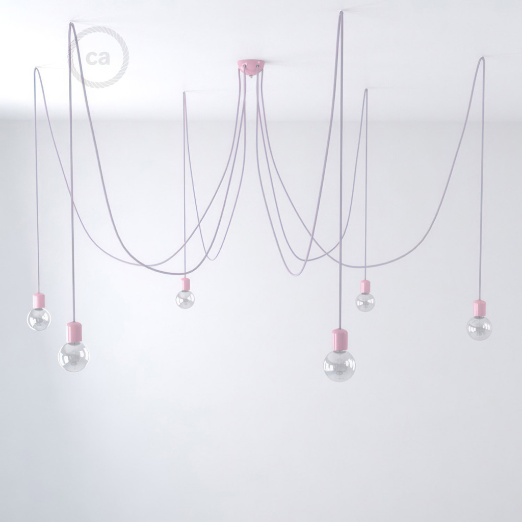 Multifunctional pendant lamp with 6 lights Made in Italy, with fabric cable and colored ceramic coating