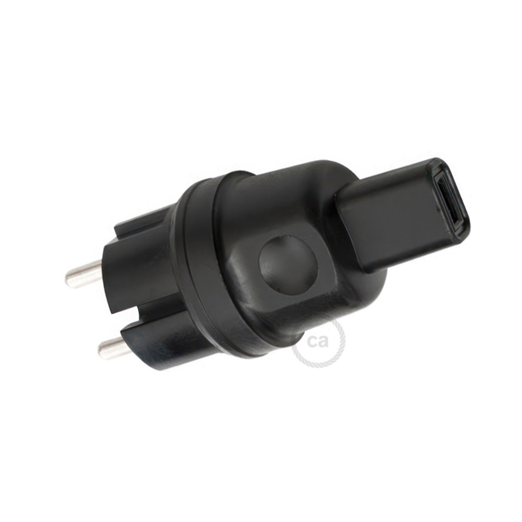 Black thermoplastic French-German plug, ideal for independent assembly of the light chain. It can be assembled and disassembled with just one screw, which simplifies the connection of the wires.