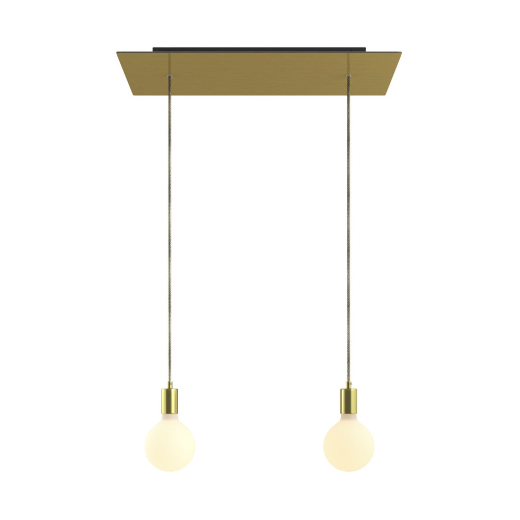 2-light pendant lamp with 675 mm rectangular XXL Rose-One, fabric cable and metal coating