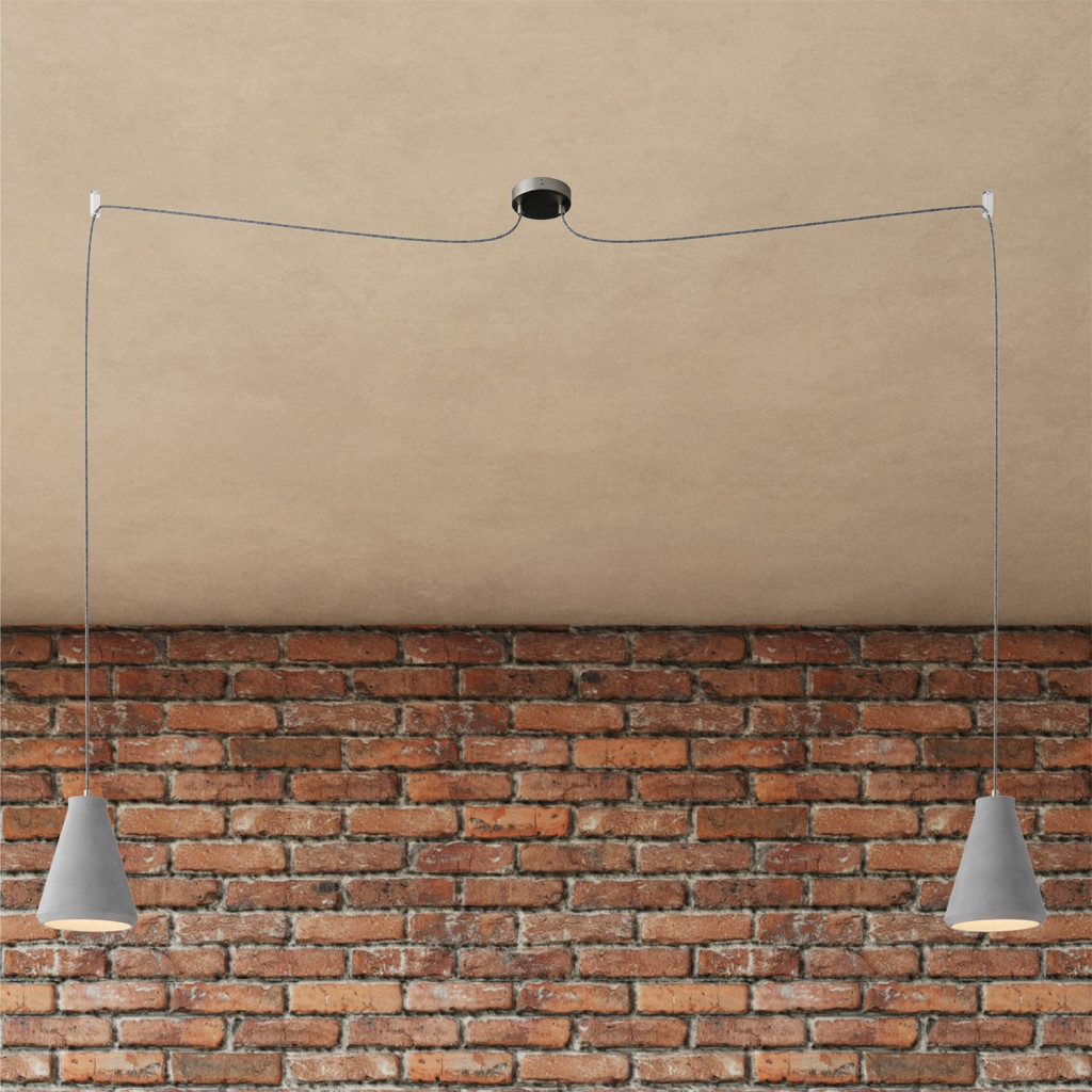 Spider – 2-light multifunctional pendant lamp Made in Italy with fabric cables and concrete lampshade