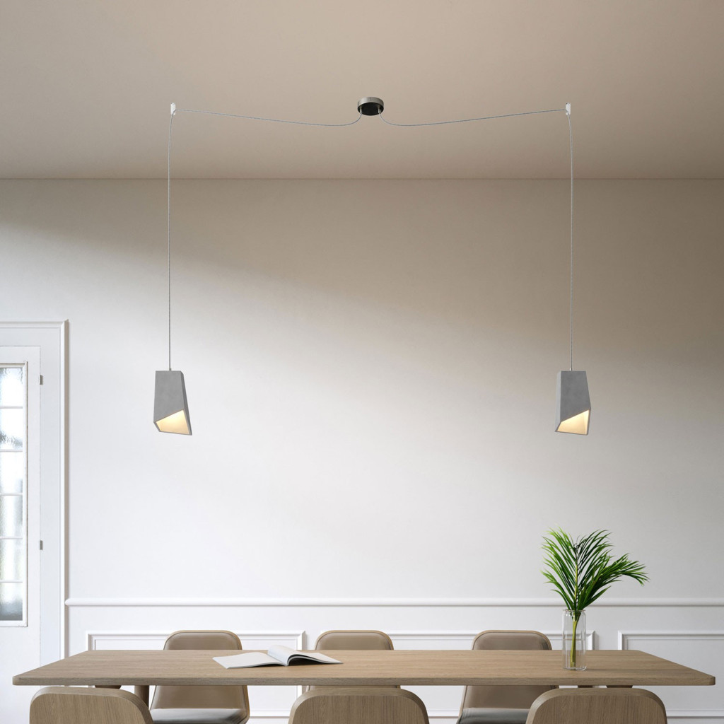 Spider – 2-light multifunctional pendant lamp Made in Italy with fabric cables and concrete lampshade