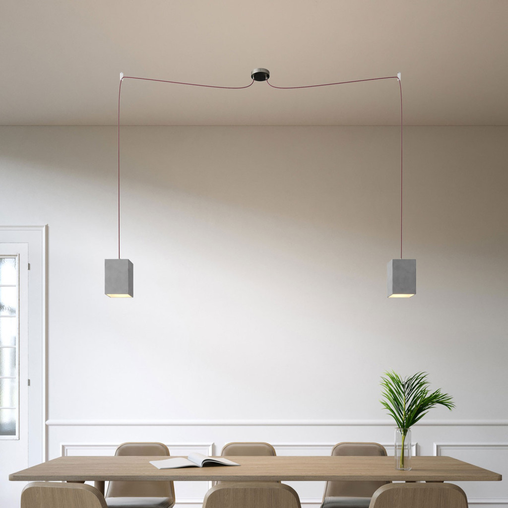 Spider – 2-light multifunctional pendant lamp Made in Italy with fabric cables and concrete lampshade
