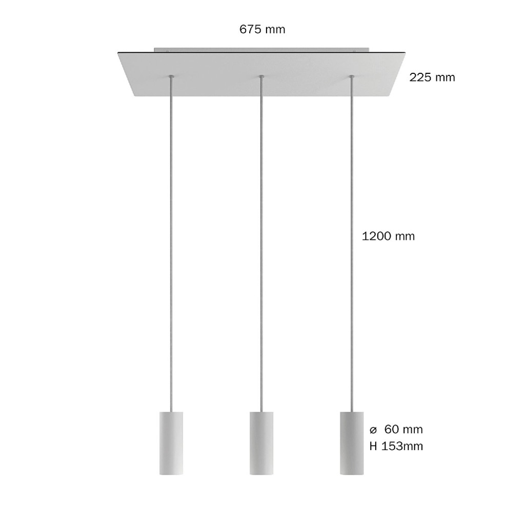 3-light pendant lamp with 675 mm rectangular XXL Rose-One, fabric cable and metal Tub-E14 lampshade