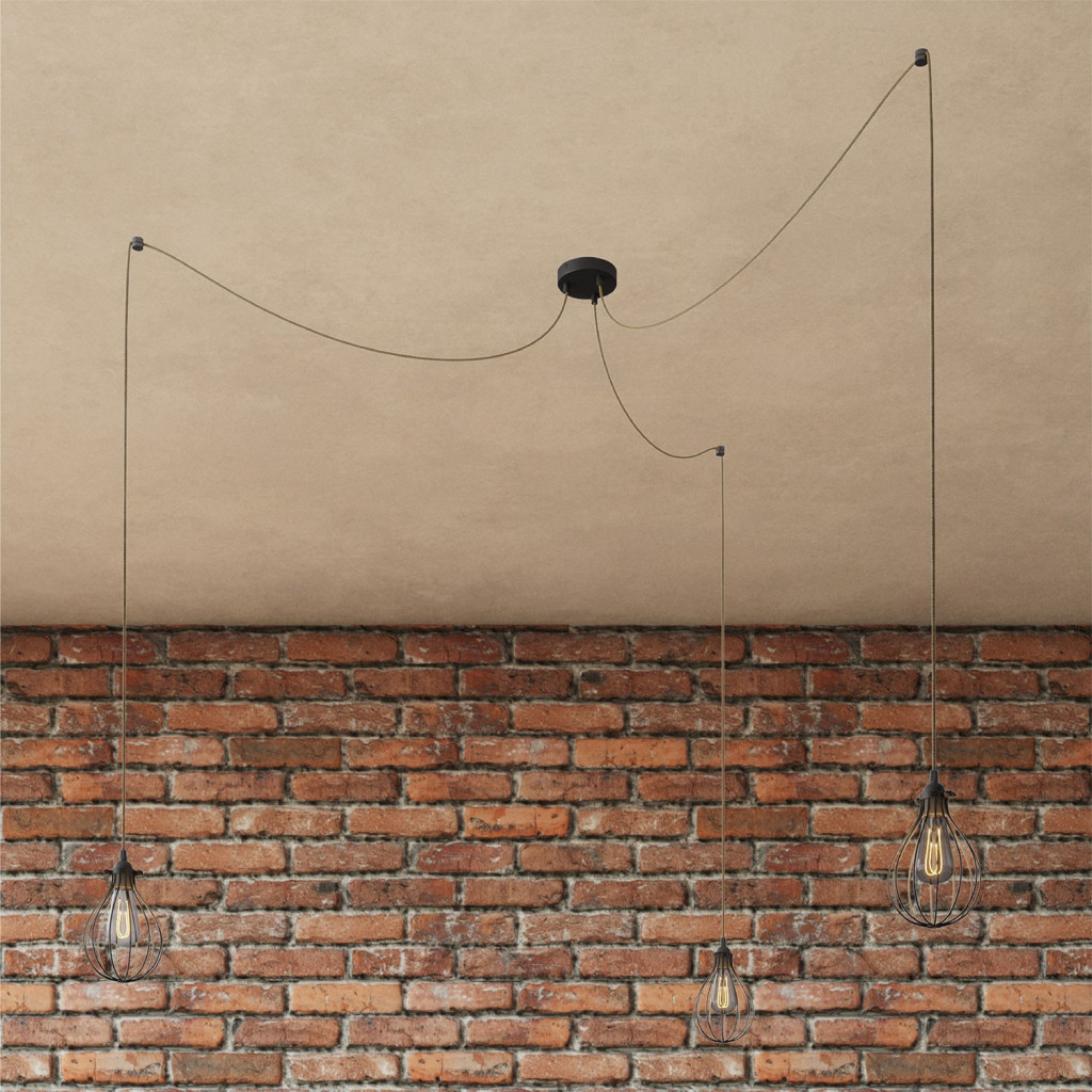 Spider - 3-light multifunctional pendant lamp Made in Italy with fabric cables and Drop lampshade