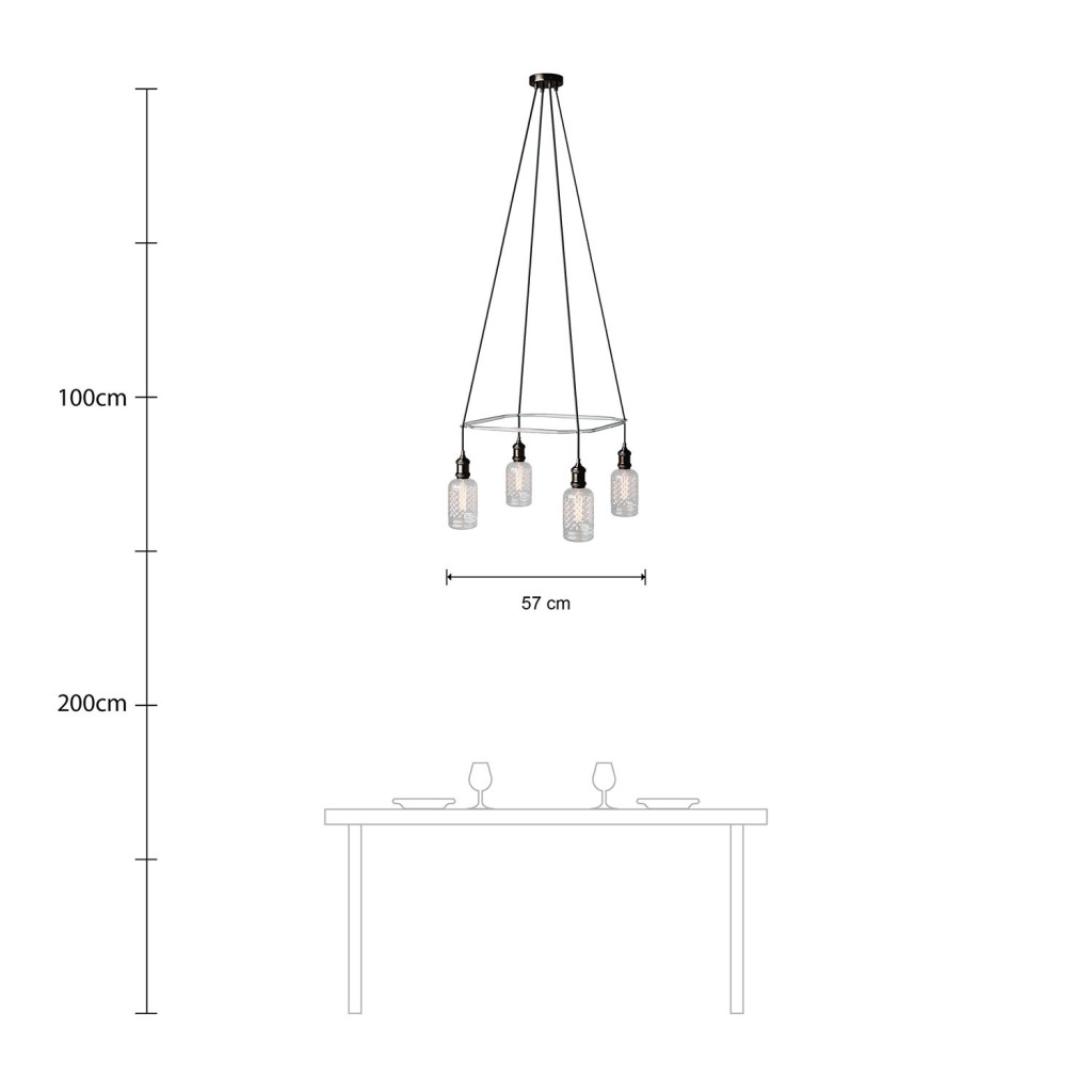 Chandelier dimensions: 57x57xH134 cm