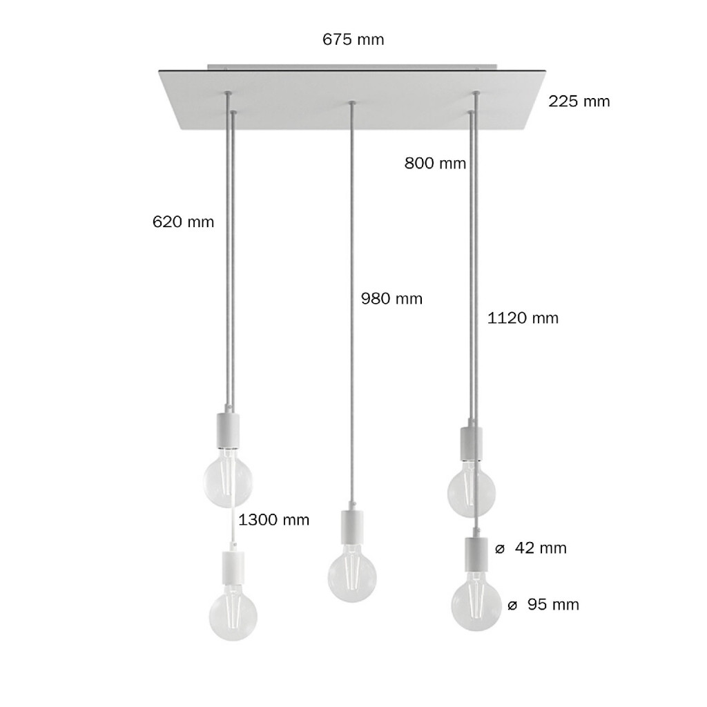 5-light pendant lamp with 675 mm rectangular XXL Rose-One, fabric cable and metal coating