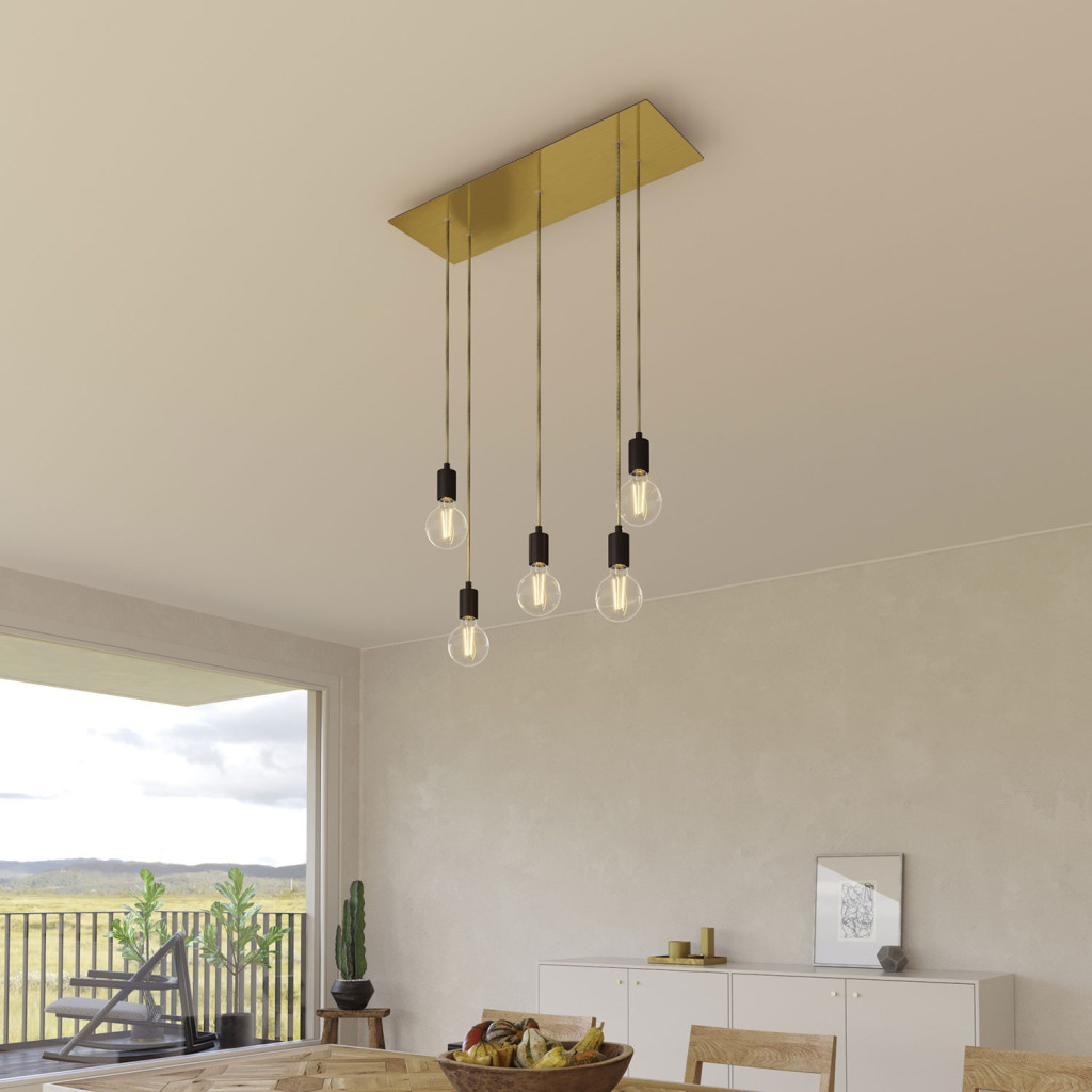 5-light pendant lamp with 675 mm rectangular XXL Rose-One, fabric cable and metal coating