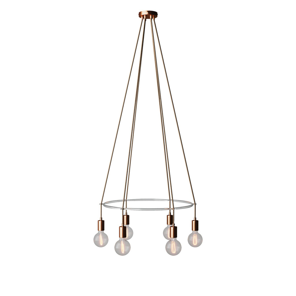 6x110 cm cable 2x0.75 in the selected color 1 metal rose with 6 holes in the selected design 6 E27 metal lamp sockets - max. 25 W
