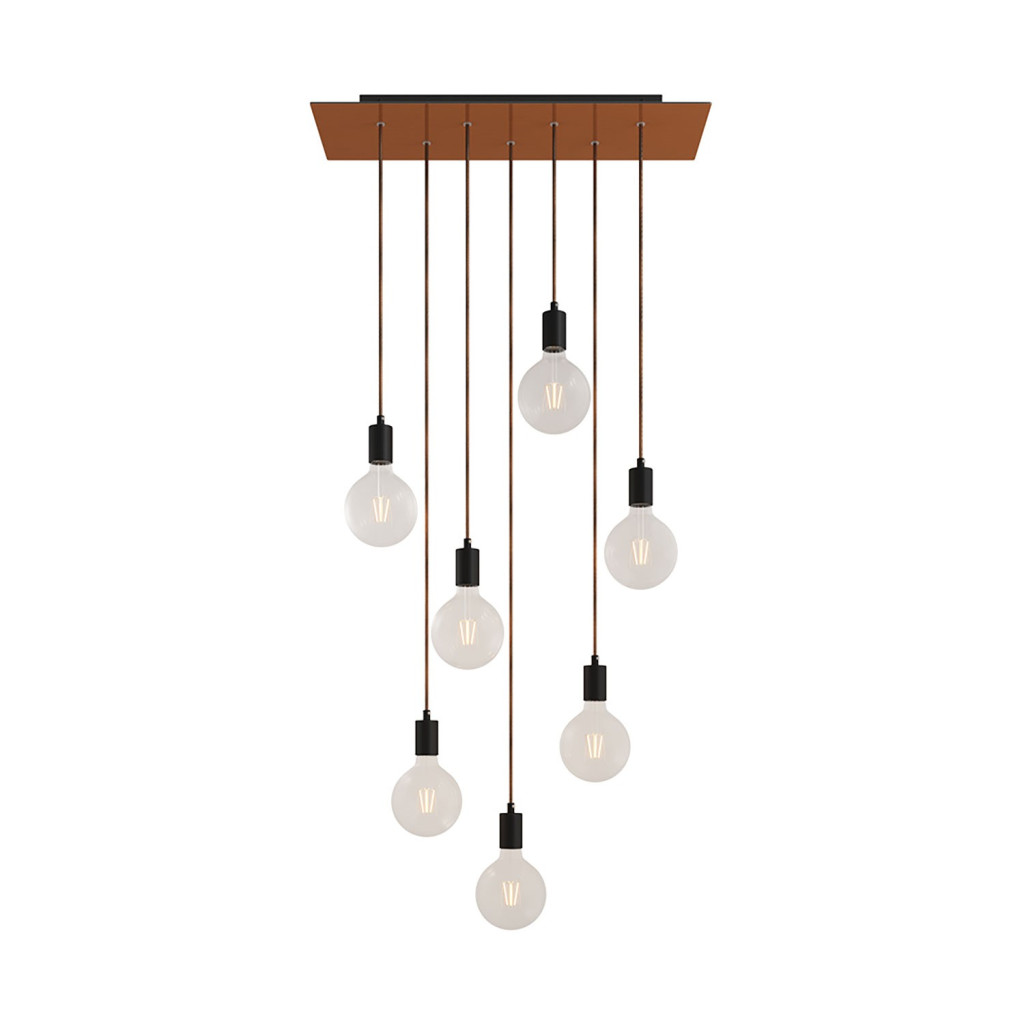 7-light pendant lamp with 675 mm rectangular XXL Rose-One, fabric cables and metal coating
