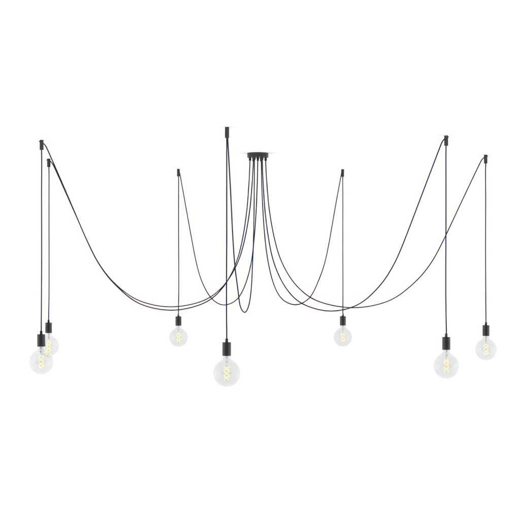 Spider - Pendant lamp with 7 pendants Made in Italy, with bulbs, fabric cables and metal finishes
