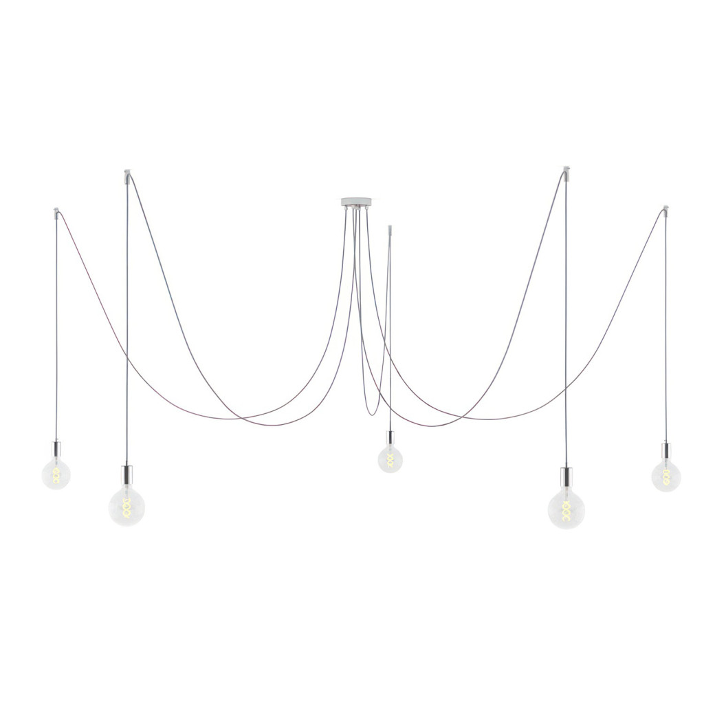 Spider - 5-light pendant lamp Made in Italy, with bulbs, fabric cables and metal cover