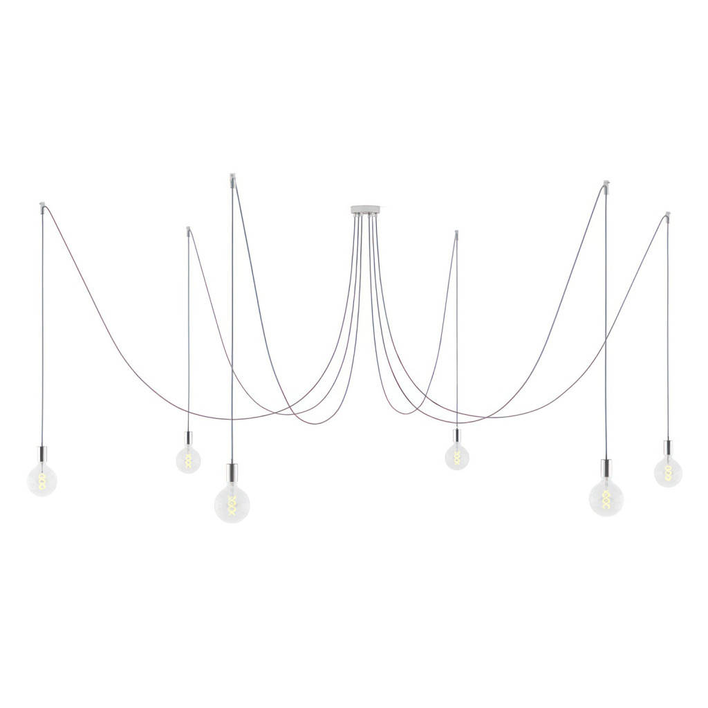 Spider - Pendant lamp with 6 pendants Made in Italy, with bulbs, fabric cables and metal finishes
