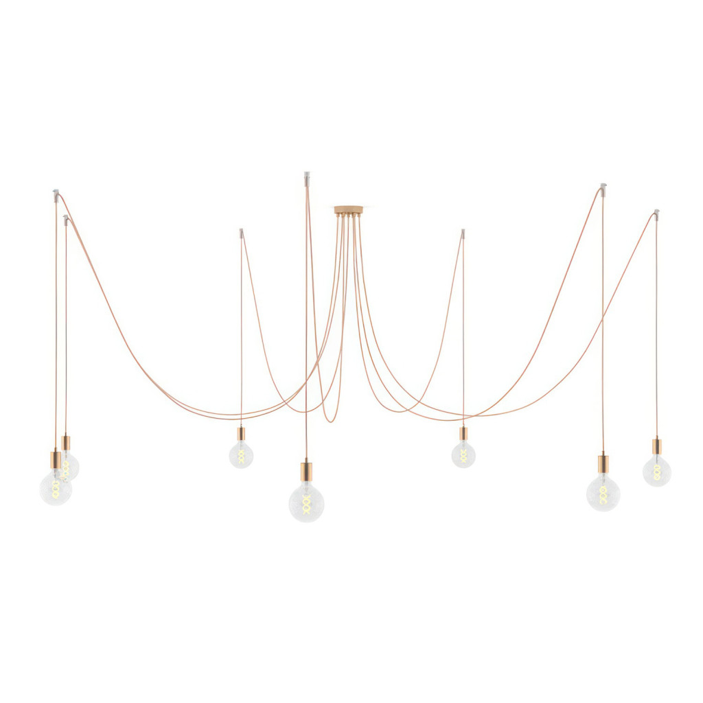 Spider - Pendant lamp with 7 pendants Made in Italy, with bulbs, fabric cables and metal finishes