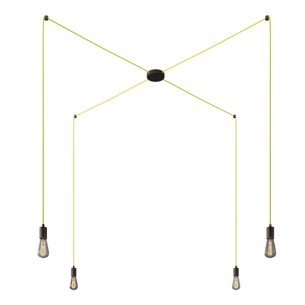 Spider - 4-light multifunctional pendant lamp Made in Italy with fabric cables and metal coating