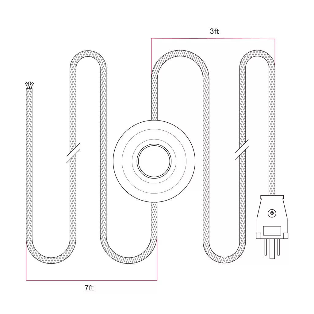 Wire length: 10 feet (3 feet from plug to switch + 7 feet from switch to end of cable) 3x18AWG UL certification: E496739.