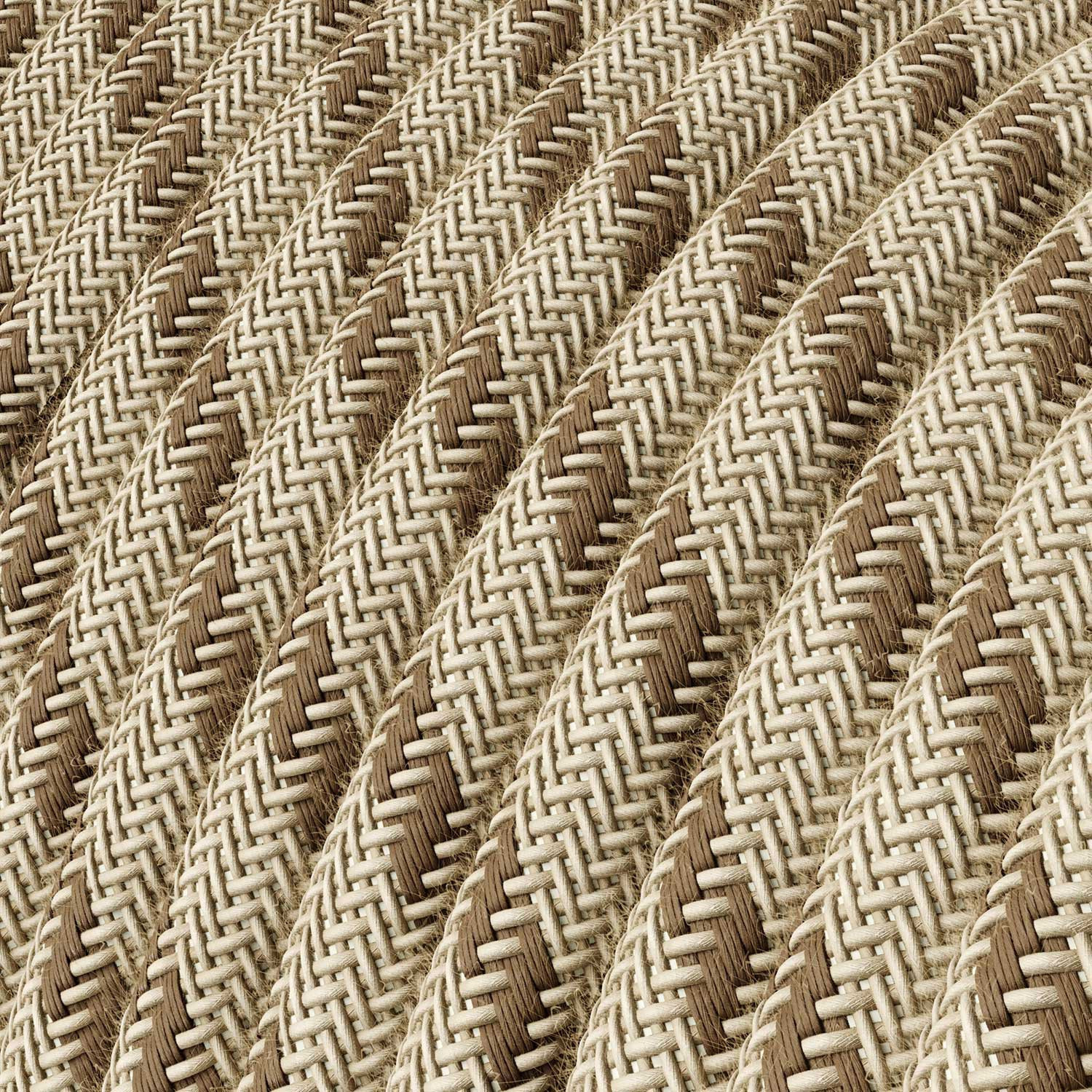 Bark and beige striped textile cable – The original Creative-Cables – RD53 round 2x0.75 mm / 3x0.75 mm