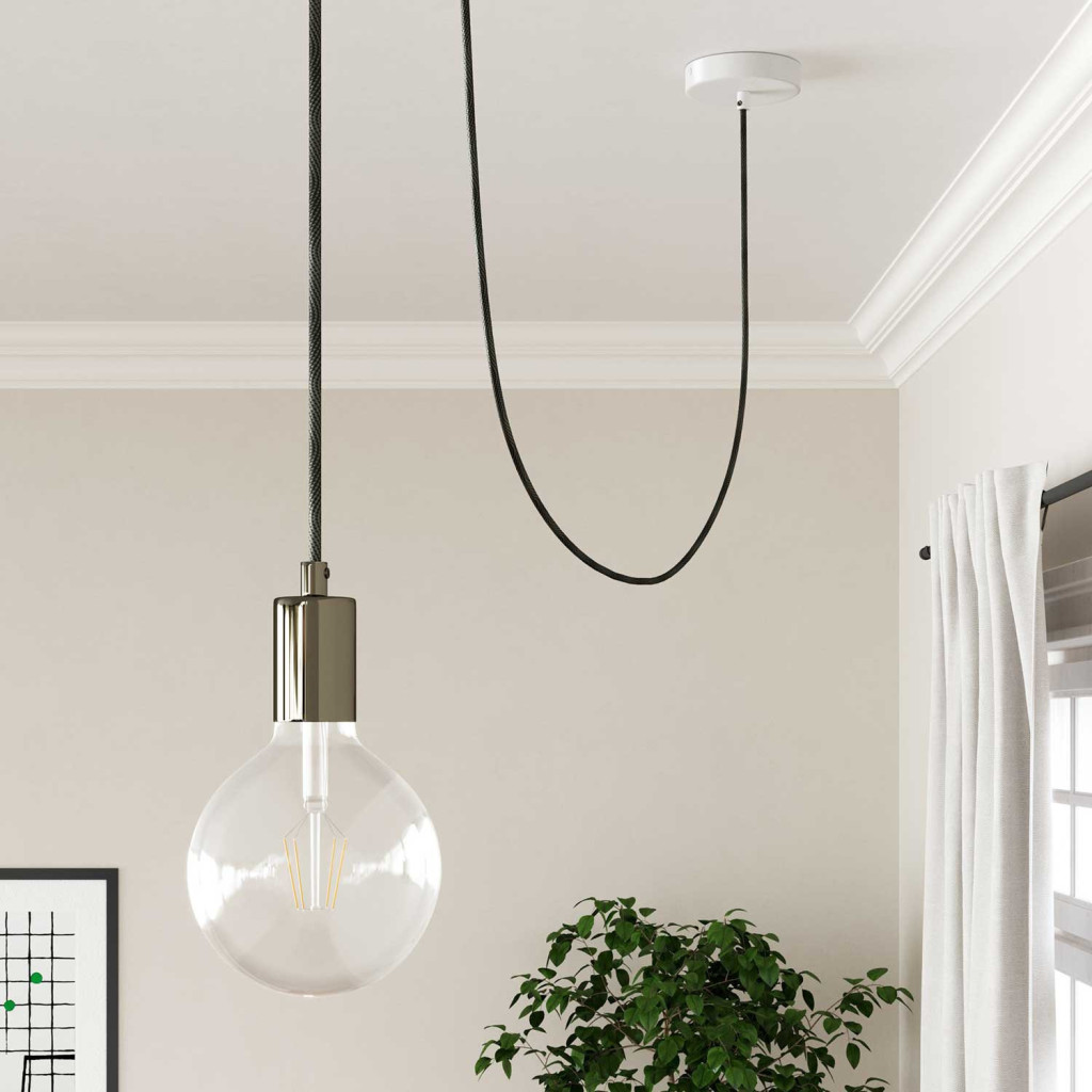 Glossy black and gray optical Vertigo textile cable – The original Creative-Cables – ERM67 round 2x0.75 mm / 3x0.75 mm