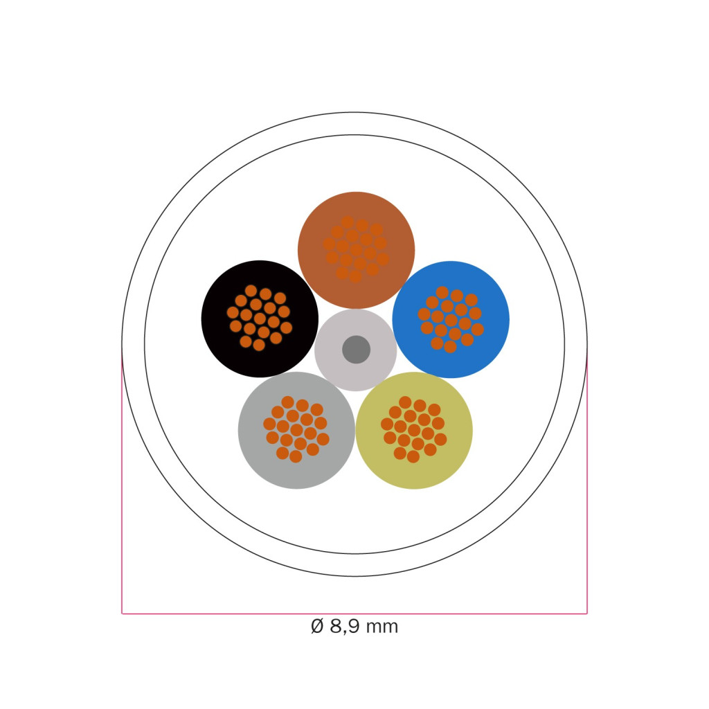 DALI textile electrical cable 5x0.75 mm² in natural white linen – Cable for designer lighting RN01