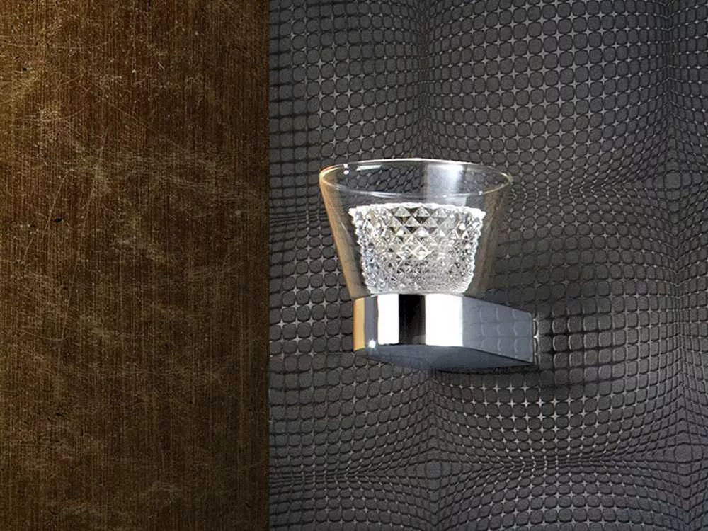 Wall holder for LED lamps made of metal, chrome finish. Double molded glass dome, similar to Cristal d'Arques on the inside, smooth on the outside. 5W LED. 420 lm. 3500 K.